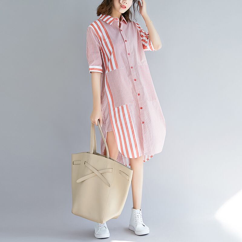 ワンピース 大きいサイズ ストライプ 着痩せ シャツ 新品 夏 ゆったり 体型カバー 主婦 OL 20代 30代 40代 RB-R3-TA02-CN07-0012
