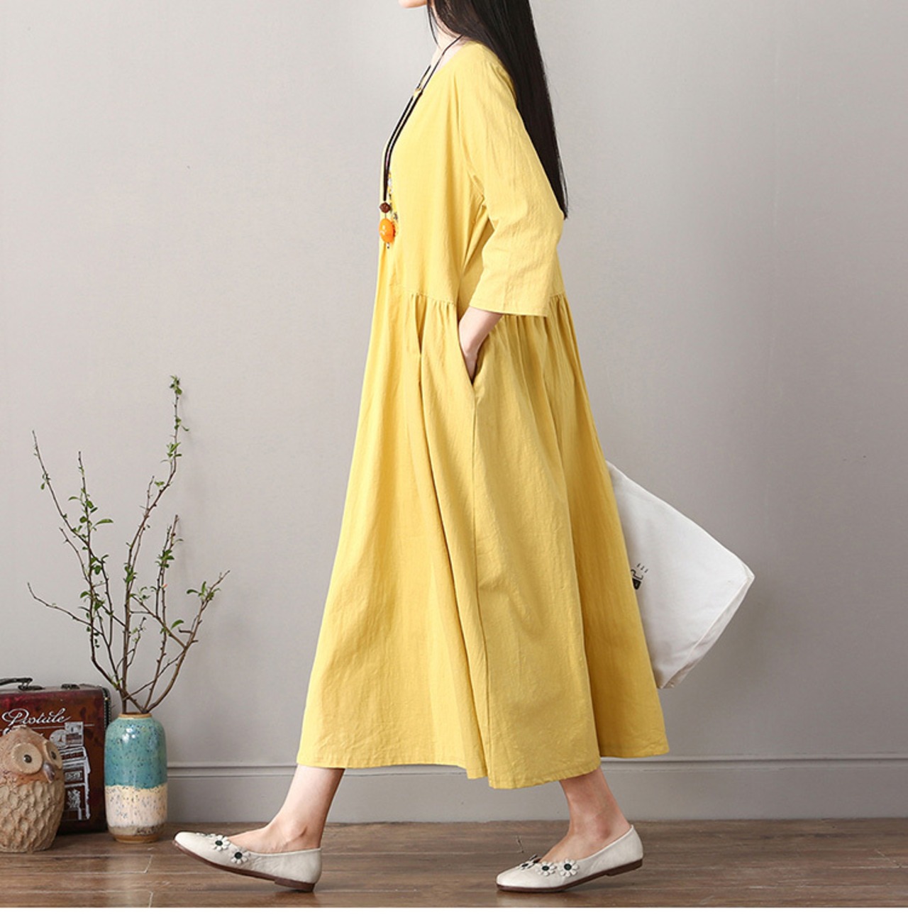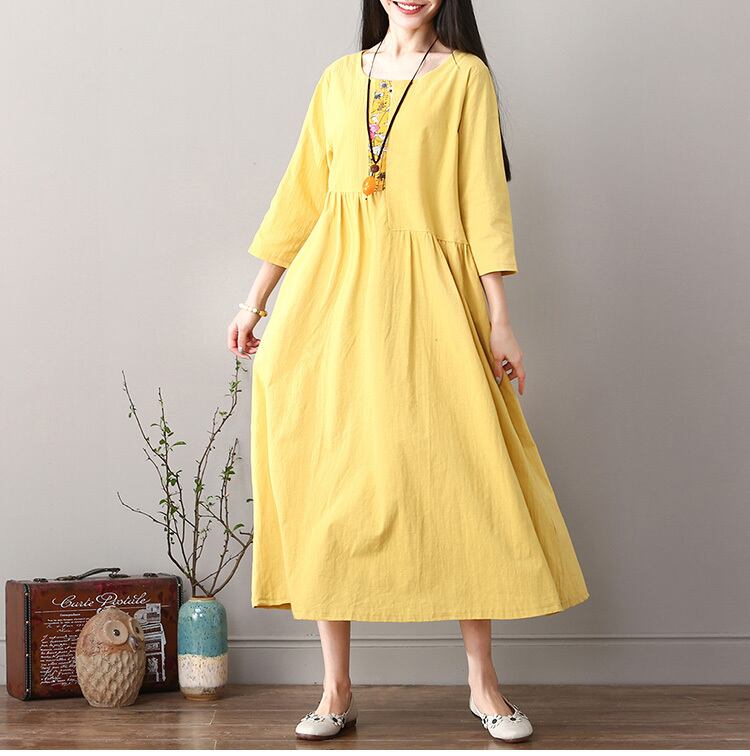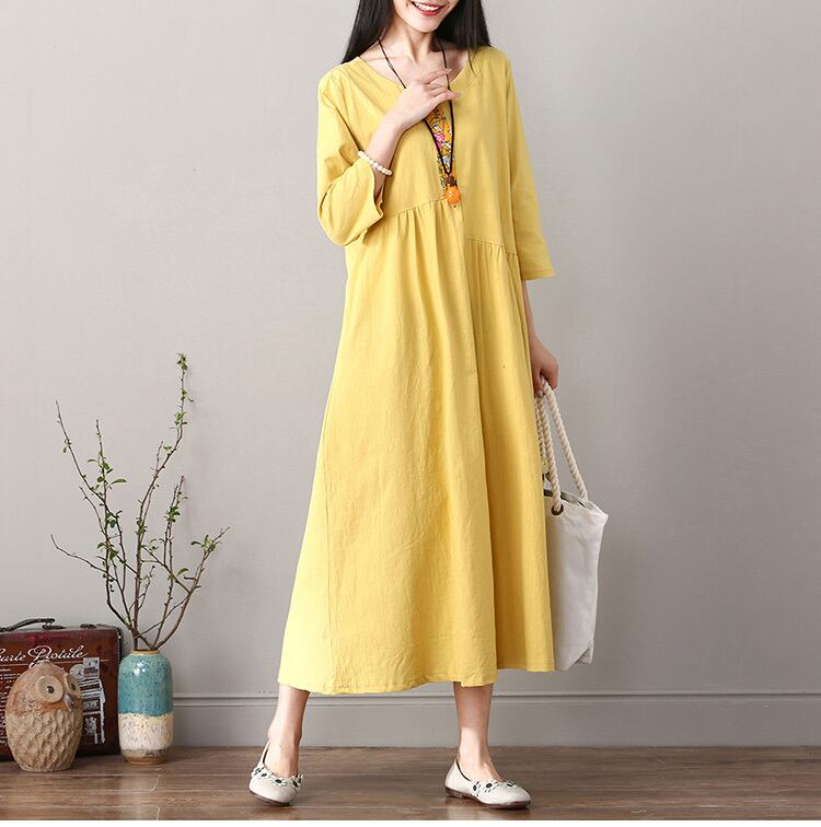ワンピース 大きいサイズ 着痩せ 綿 麻 カジュアル 亜麻 ロングスカート 春 夏 ゆったり 体型カバー 主婦 OL 20代 30代 40代 RB-R3-TA02-CN07-0017