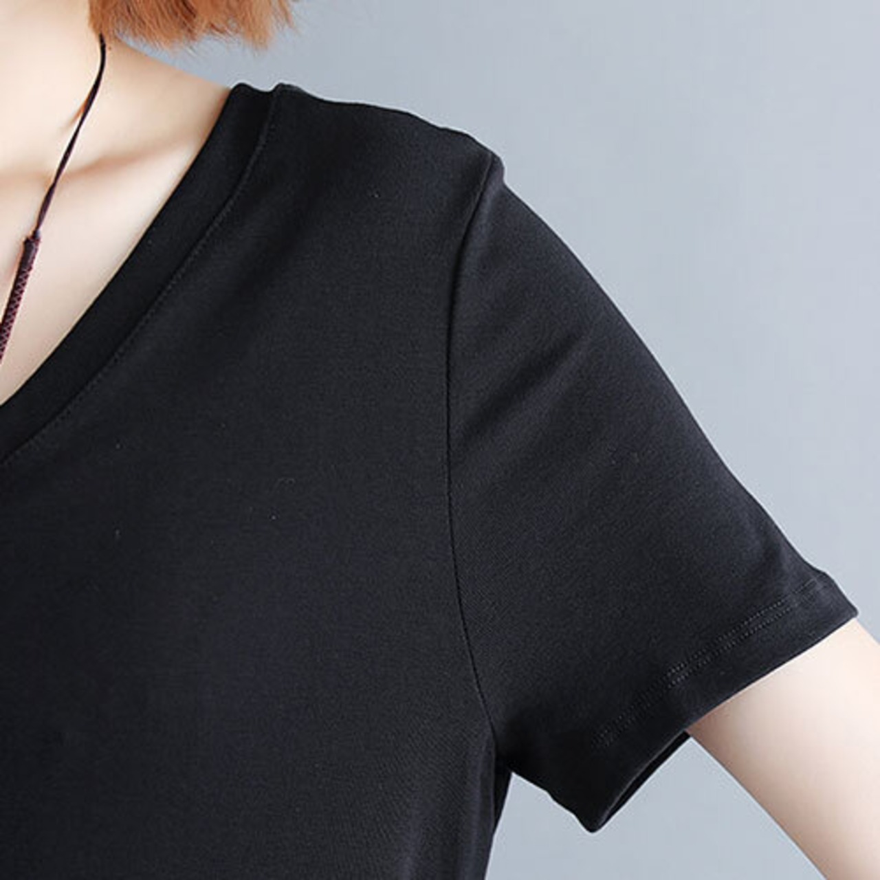 ワンピース Tシャツ ひざ下丈 Vネック 半袖 カジュアル 夏 こなれ感 グレー ブラック ゆったり 体型カバー 主婦 OL 20代 30代 40代 RB-R3-BA01-SA07-0001