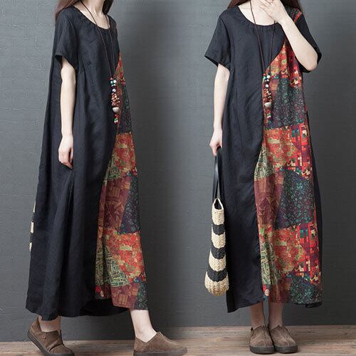 ワンピース レディース 大きいサイズ 半袖 ラウンドネック ロング丈 花柄 切り替え カジュアル 大人 ゆったり 体型カバー 主婦 OL 20代 30代 40代 RB-R3-BA01-SA07-0022
