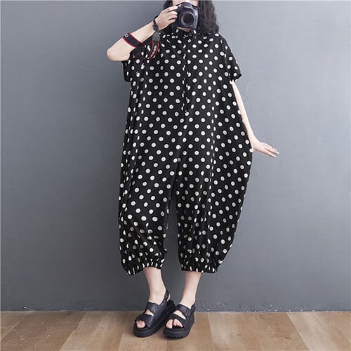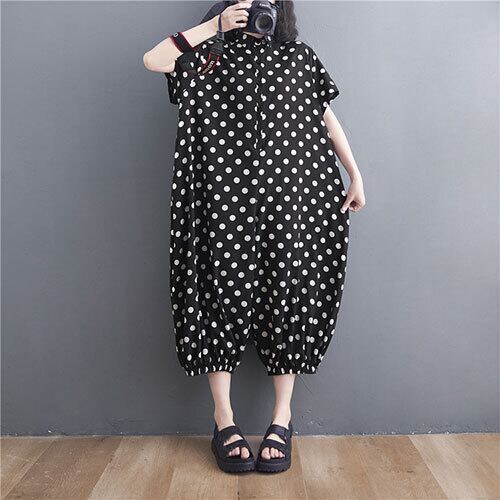 オールインワン レディース 大きいサイズ オーバーオール つなぎ PORO襟 九分パンツ ゆったり ジャンプスーツ ドット柄 カジュアル 可愛い ゆったり 体型カバー 主婦 OL 20代 30代 40代 RB-R3-BA01-SA07-0031