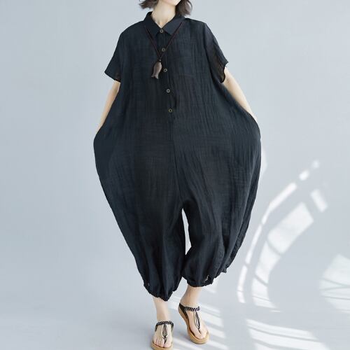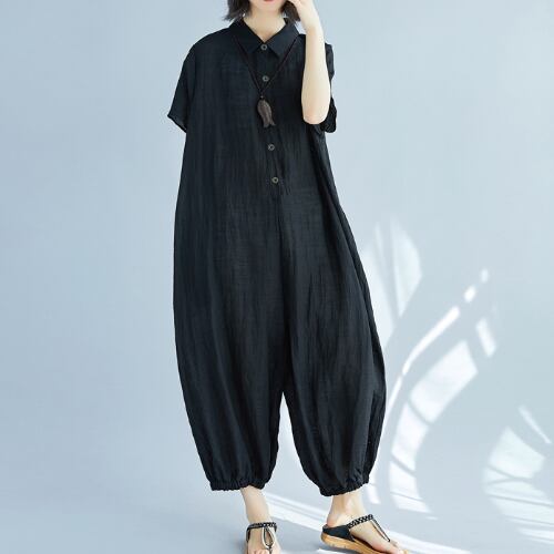 オールインワン レディース 大きいサイズ オーバーオール 半袖 PORO襟 九分パンツ つなぎ ジャンプスーツ ゆったり カジュアル 可愛い ゆったり 体型カバー 主婦 OL 20代 30代 40代 RB-R3-BA01-SA07-0034