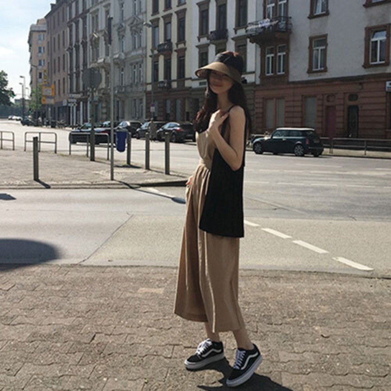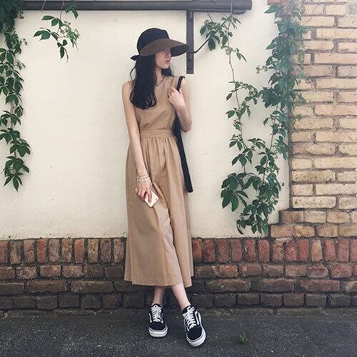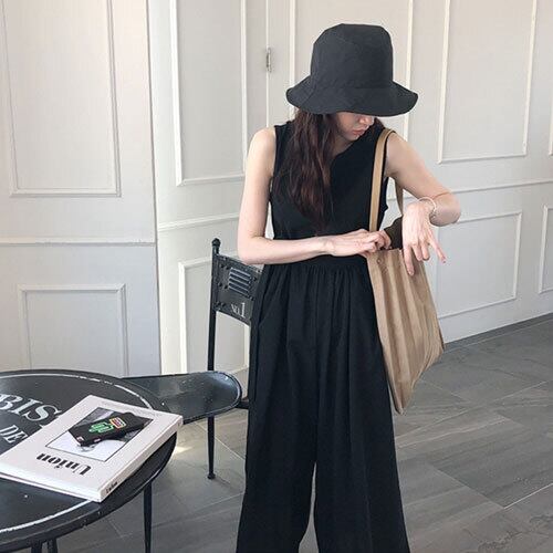 オールインワン ハイウエスト ジャンプスーツ ノースリーブ クロップド丈 こなれ感 リゾート カジュアル 大人可愛い ベージュ ブラック ゆったり 体型カバー 主婦 OL 20代 30代 40代 RB-R3-BA01-SA07-0049