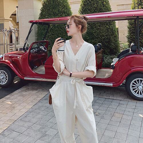 オールインワン レディース ジャンプスーツ 大きいサイズ 無地 オフホワイト ワイドパンツ Vネック 半袖 こなれ感 リゾート ゆったり カジュアル 大人可愛い お出かけ ゆったり 体型カバー 主婦 OL 20代 30代 40代 RB-R3-BA01-SA07-0046