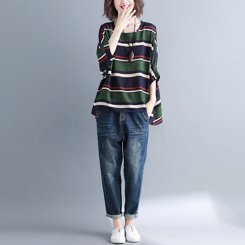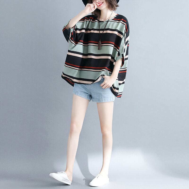 Tシャツ 大きいサイズ シャツ 文芸 ストライプ ゆったり 体型カバー 主婦 OL 20代 30代 40代 RB-R3-TA02-CN07-0061