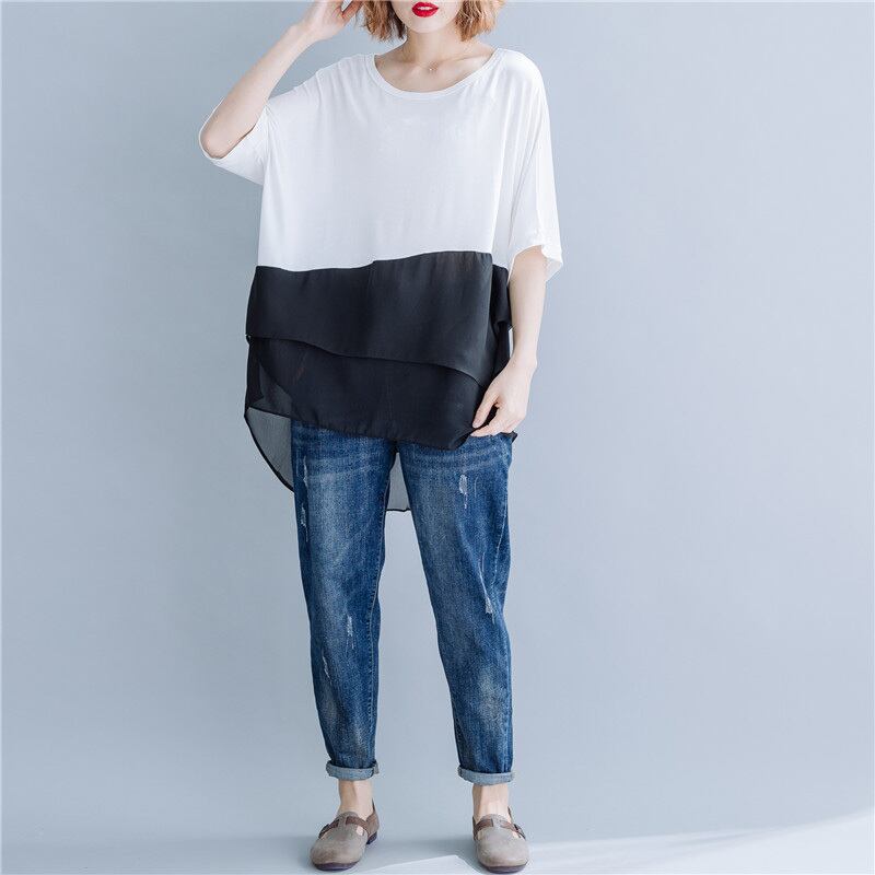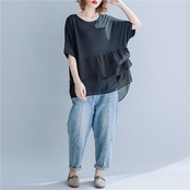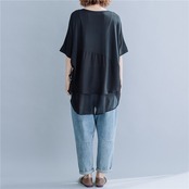 Tシャツ シフォン 着瘦せ 半袖 シャツ ゆったり 体型カバー 主婦 OL 20代 30代 40代 RB-R3-TA02-CN07-0080
