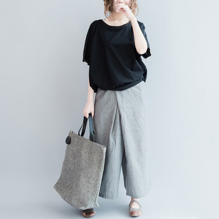 Tシャツ ストライプTシャツ レジャー 着瘦せ 半袖 シャツ ゆったり 体型カバー 主婦 OL 20代 30代 40代 RB-R3-TA02-CN07-0081