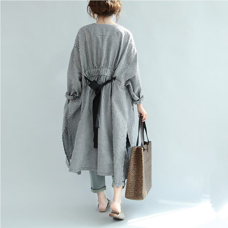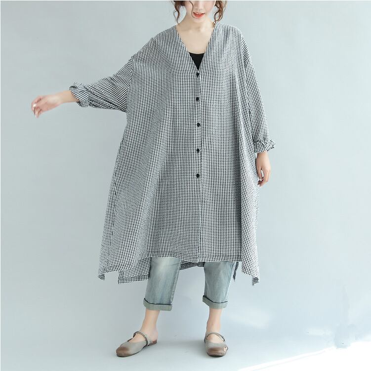 シャツ チェック柄 Vネック ワンピース ゆったり 体型カバー 主婦 OL 20代 30代 40代 RB-R3-TA02-CN07-0094