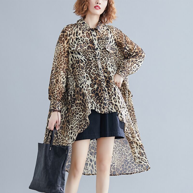 シャツ 不規則 ヒョウ柄 ゆったり 体型カバー 主婦 OL 20代 30代 40代 RB-R3-TA02-CN07-0098
