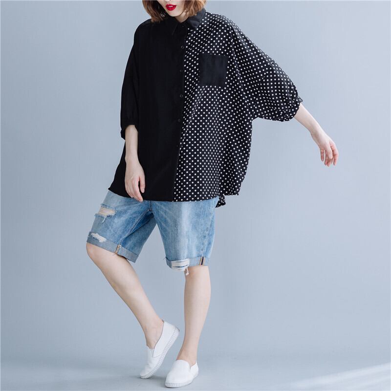 シャツ パッチワークシャツ柄 半袖 ゆったり 体型カバー 主婦 OL 20代 30代 40代 RB-R3-TA02-CN07-0100