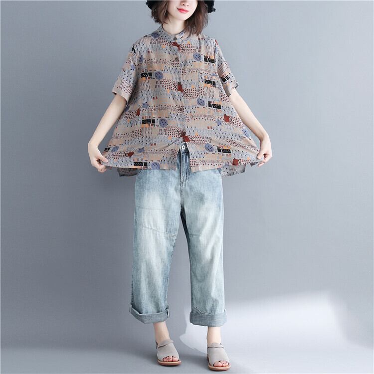 シャツ 綿 麻 プリント ゆったり 体型カバー 主婦 OL 20代 30代 40代 RB-R3-TA02-CN07-0117