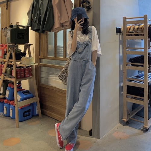 サロペット デニム レディース パンツ ストレート オーバーオール オールインワン ロング丈 無地 カジュアル ナチュラル 大人可愛い 夏 お出かけ ゆったり 体型カバー 主婦 OL 20代 30代 40代 RB-R3-BA01-SA07-0073