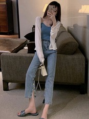 ゆったり 体型カバー 主婦 OL 20代 30代 40代デニムパンツ ストレートRB-R3-BA02-NK07-0103