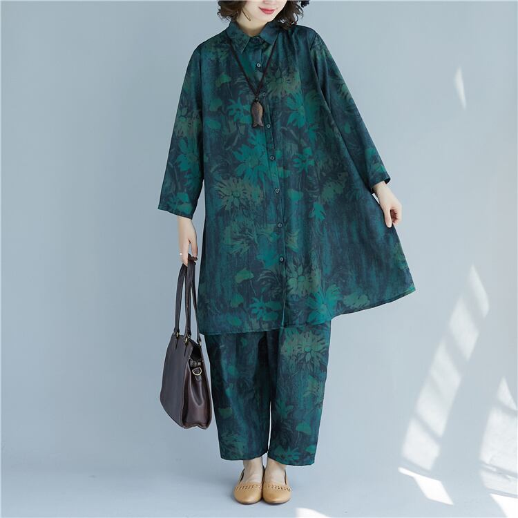 セットアップ 花柄 中国風 ロングシャツ パンツ 2点セット ゆったり 体型カバー 主婦 OL 20代 30代 40代 RB-R3-TA02-CN07-0130