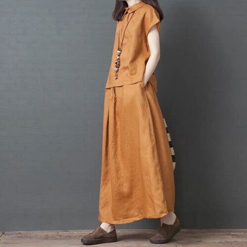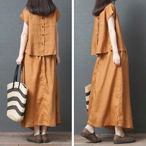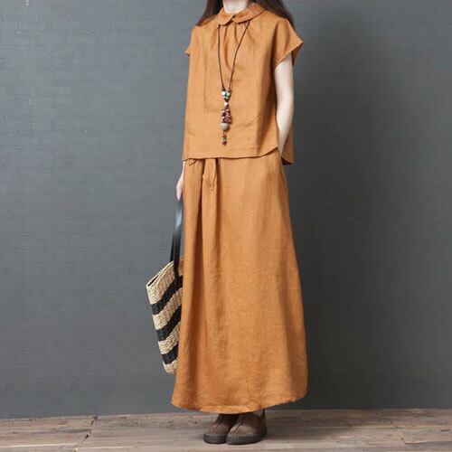 セットアップ 夏 半袖 ロングスカート カジュアル シンプル こなれ感 エレガント 大人可愛い ライトブラウン ブラック ゆったり 体型カバー 主婦 OL 20代 30代 40代 RB-R3-BA01-SA07-0092