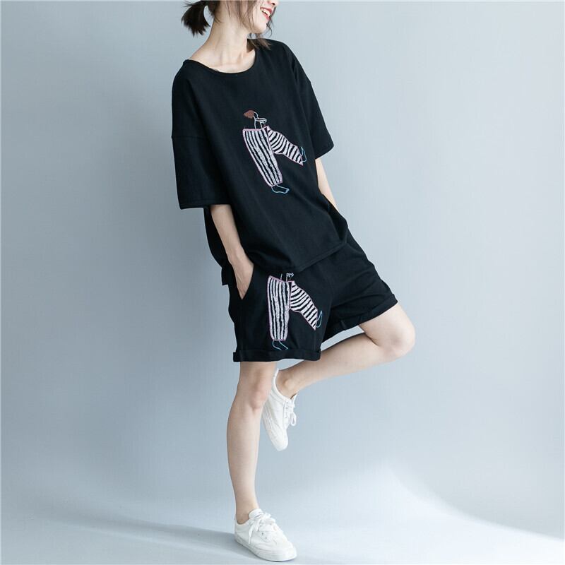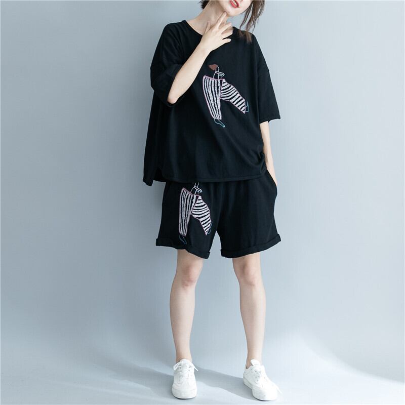 セットアップ 刺繍 可愛い Tシャツ ショートパンツ 2点セット ゆったり 体型カバー 主婦 OL 20代 30代 40代 RB-R3-TA02-CN07-0133