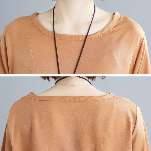 セットアップ Tシャツパンツ 夏 五分袖 七分丈 ラウンドネック 無地 アシンメトリー カジュアル エレガント ライトブラウン パープル レイクブルー ゆったり 体型カバー 主婦 OL 20代 30代 40代 RB-R3-BA01-SA07-0095