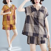 セットアップ Vネック レジャー シャツ パンツ 2点セット ゆったり 体型カバー 主婦 OL 20代 30代 40代 RB-R3-TA02-CN07-0135