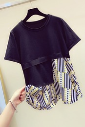 ゆったり 体型カバー 主婦 OL 20代 30代 40代 パッチワーク アシンメトリー 半袖 RB-R3-BA03-NK07-0024