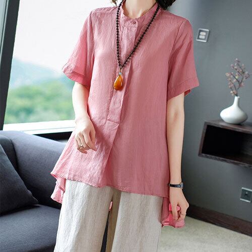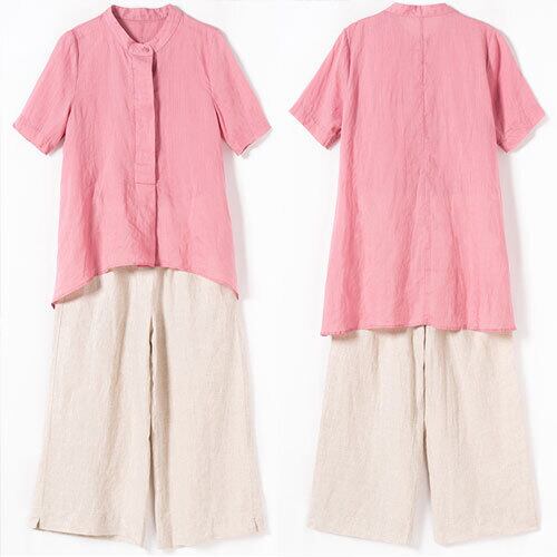 セットアップ レディース 夏 ブラウス ワイドパンツ 半袖 ノーカラー カジュアル 通勤 大人可愛い ゆったり 体型カバー 主婦 OL 20代 30代 40代 RB-R3-BA01-SA07-0118