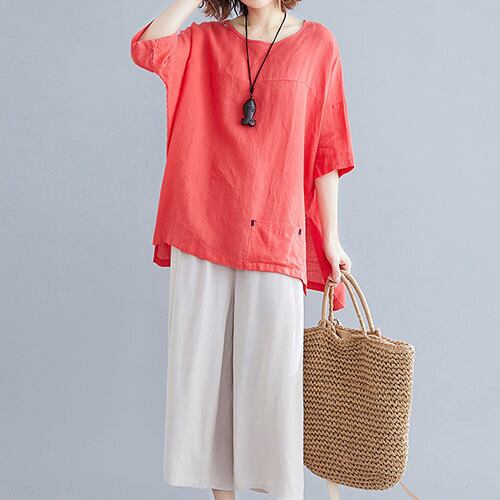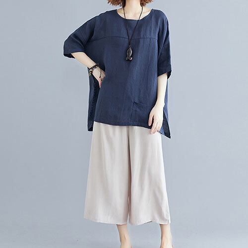 セットアップ レディース 夏 ブラウス 五分袖 ラウンドネック ワイド九分丈パンツ カジュアル 通勤 シンプル ゆったり 体型カバー 主婦 OL 20代 30代 40代 RB-R3-BA01-SA07-0119