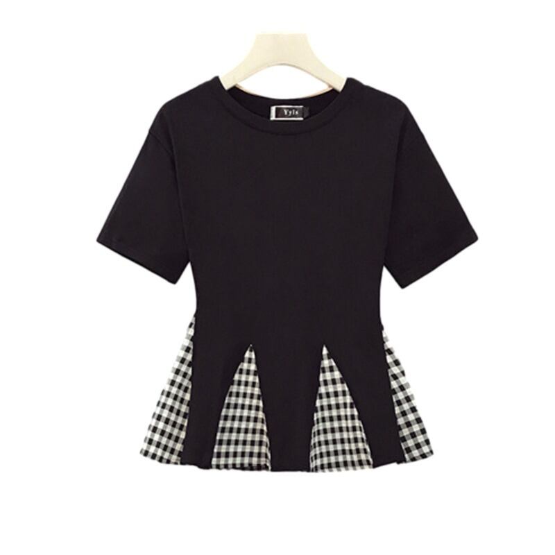ゆったり 体型カバー 主婦 OL 20代 30代 40代チェック柄 ラウンドネック 半袖 シャツ RB-R3-BA03-NK07-0026