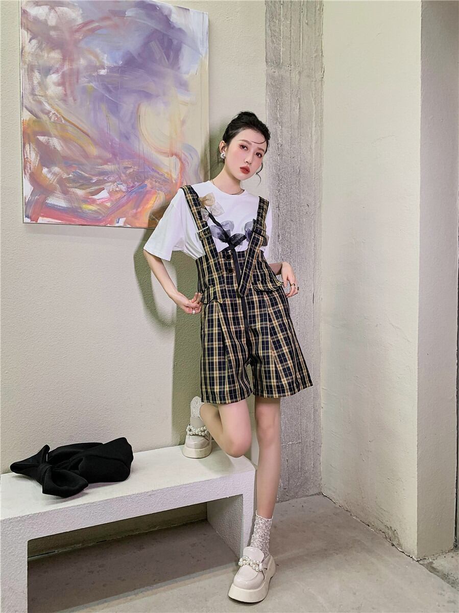 ゆったり 体型カバー 主婦 OL 20代 30代 40代チェック柄 オーバーオール サスペンダーRB-R3-BA03-NK07-0034