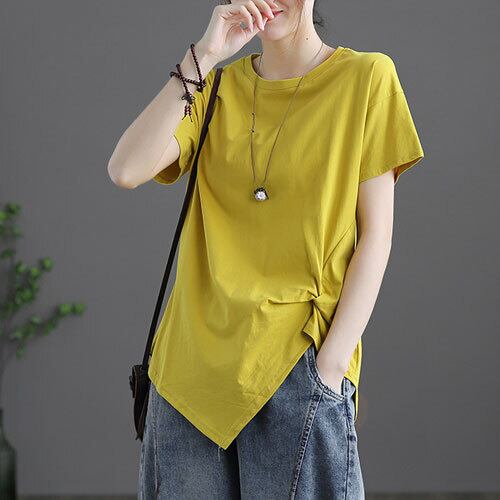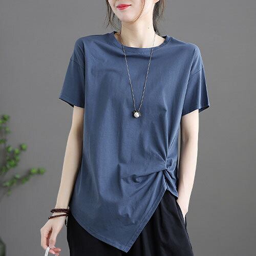 Tシャツ 半袖 ラウンドネック アシンメトリー 夏 シンプル エレガント フェミニン 大人可愛い こなれ感 全9色 ゆったり 体型カバー 主婦 OL 20代 30代 40代 RB-R3-BA01-SA07-0127