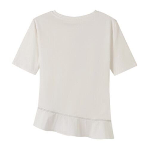 Tシャツ レディース 半袖 ラウンドネックトップス 夏 ウエストリボン フリル ホワイト エレガント ガーリー フェミニン 大人可愛い ゆったり 体型カバー 主婦 OL 20代 30代 40代 RB-R3-BA01-SA07-0130