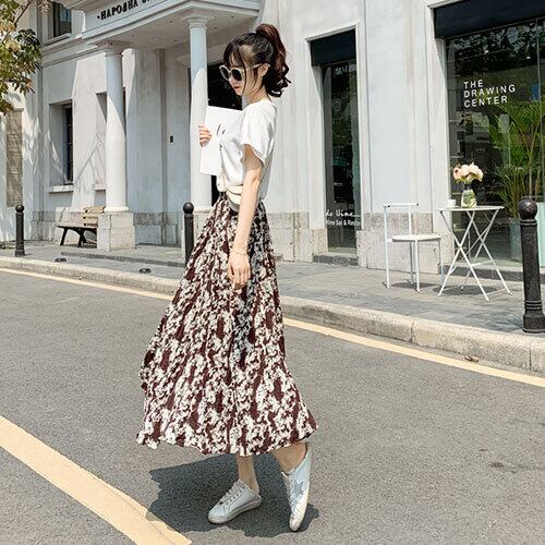 スカート 夏 フラワー柄 カジュアル トレンド マキシ丈 Aライン ブラック ブラウン ゆったり 体型カバー 主婦 OL 20代 30代 40代 RB-R3-BA01-SA07-0151