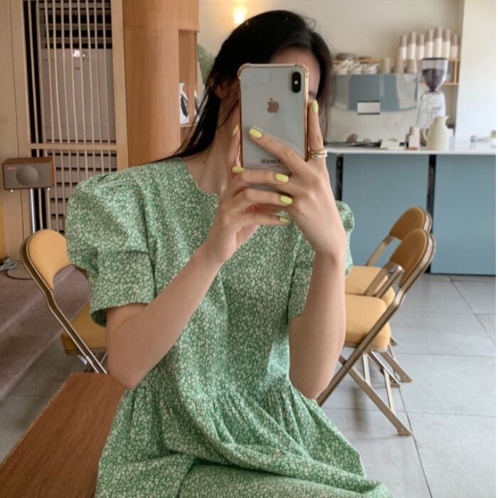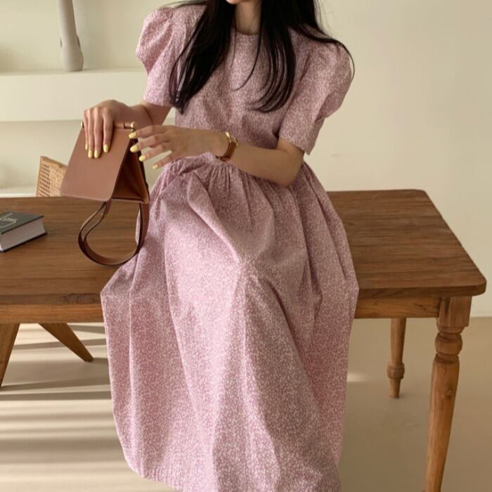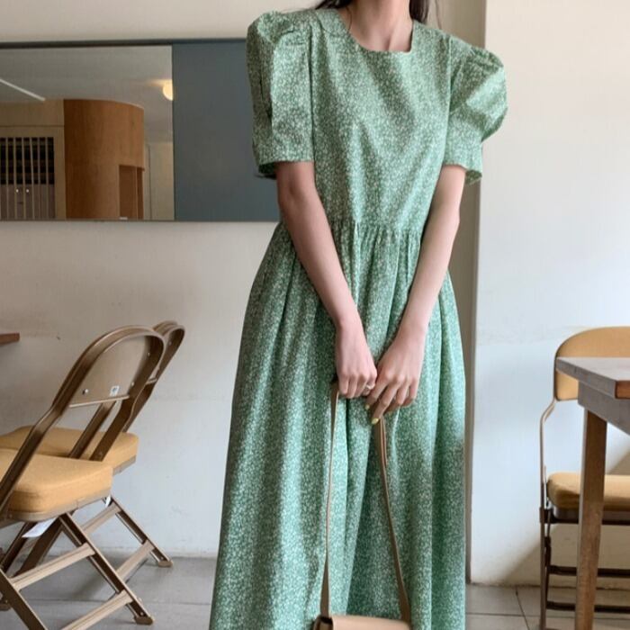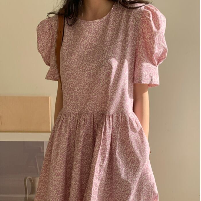 ゆったり 体型カバー 主婦 OL 20代 30代 40代ラウンドネック 花柄 半袖 ワンピース RB-R3-BA03-NK07-0068