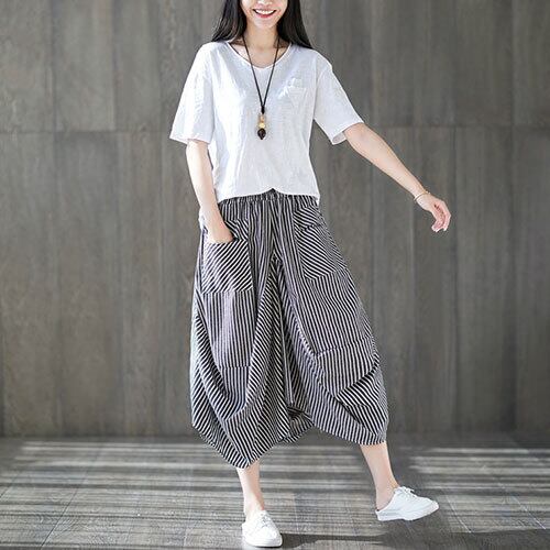 変形スカート レディース ミディアム丈 ストライプ コットン リネン シンプル ウエストゴム カジュアル 大人可愛い ゆったり 体型カバー 主婦 OL 20代 30代 40代 RB-R3-BA01-SA07-0164