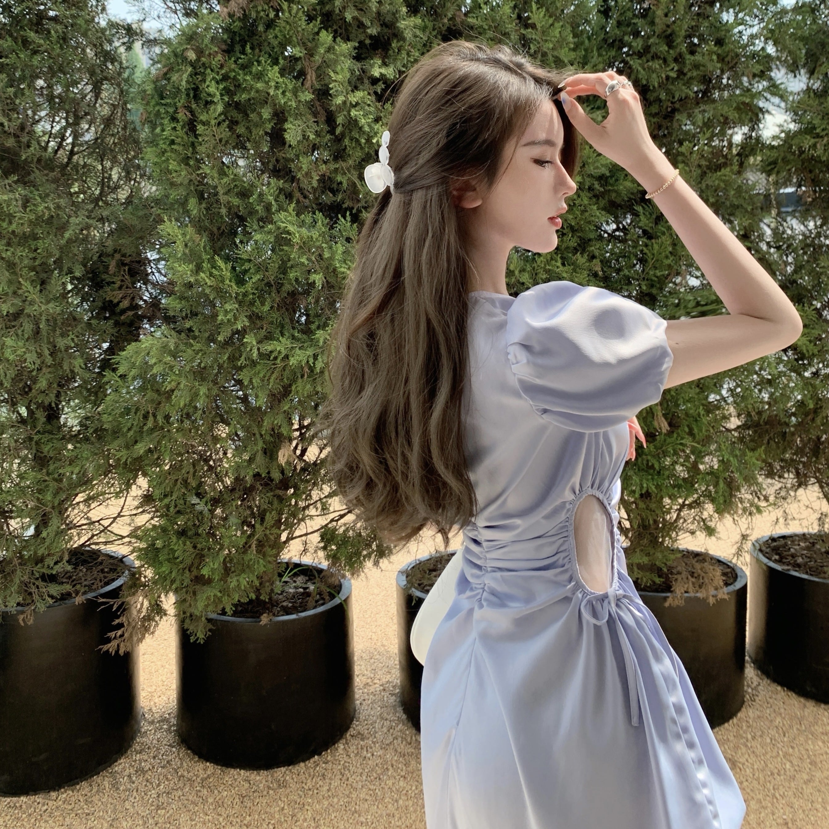 ゆったり 体型カバー 主婦 OL 20代 30代 40代パフスリーブ 半袖 ワンピースRB-R3-BA03-NK07-0071