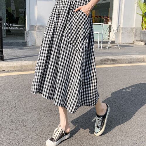 スカート レディース 夏 ギンガムチェック ブラック コットン ポケット ロング丈 カジュアル フレア 大人可愛い ゆったり 体型カバー 主婦 OL 20代 30代 40代 RB-R3-BA01-SA07-0167