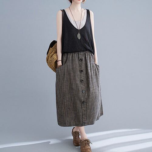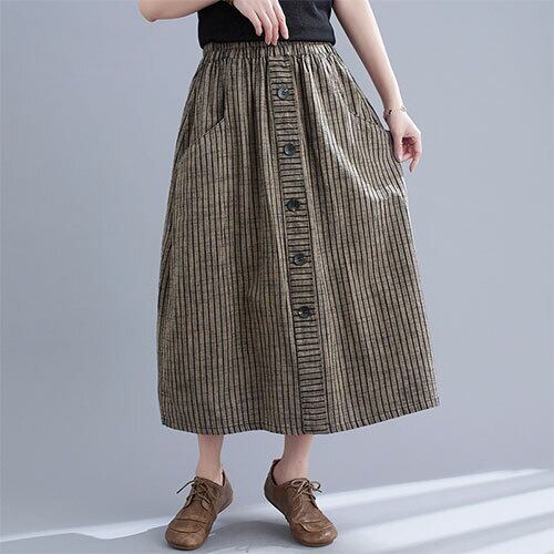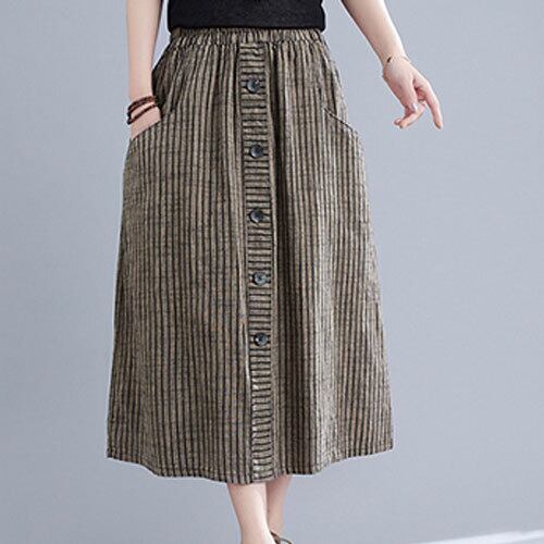 スカートフレア ロング丈 レディース 夏 ストライプ柄 Aライン ハイウエスト 大きいサイズ フロントボタン カジュアル 大人可愛い トレンド ゆったり 体型カバー 主婦 OL 20代 30代 40代 RB-R3-BA01-SA07-0172
