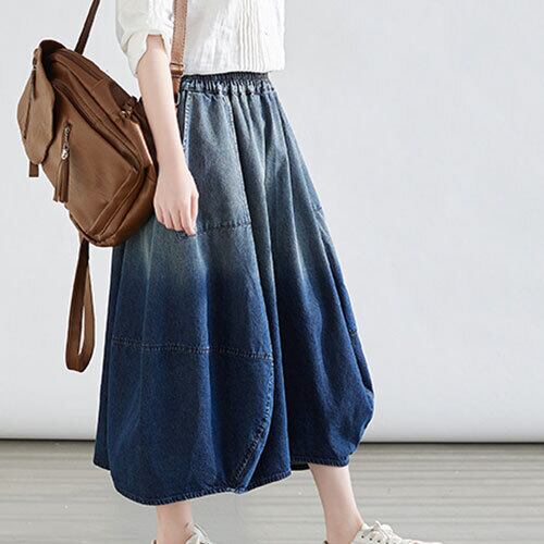 スカート デニム マキシ丈 レディース 夏 バルーン グラデーションーンカラー ブルー コットン カジュアル トレンド 通勤 レジャー 可愛い ゆったり 体型カバー 主婦 OL 20代 30代 40代 RB-R3-BA01-SA07-0176