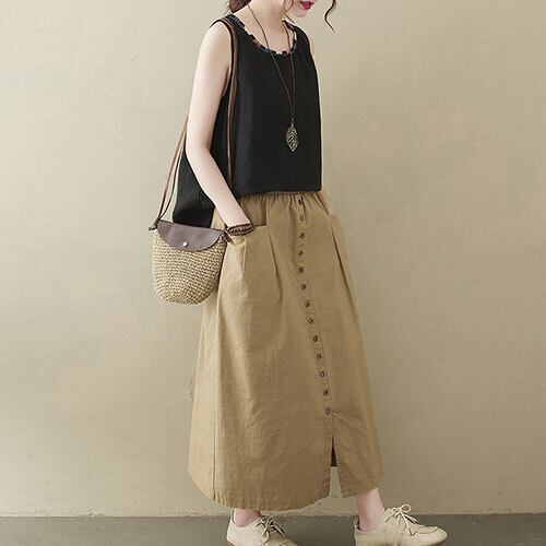 スカート レディース 夏 リネン フロントボタン Aライン ビッグポケット カジュアル 通勤 トレンド ロング丈 大人可愛い ゆったり 体型カバー 主婦 OL 20代 30代 40代 RB-R3-BA01-SA07-0177