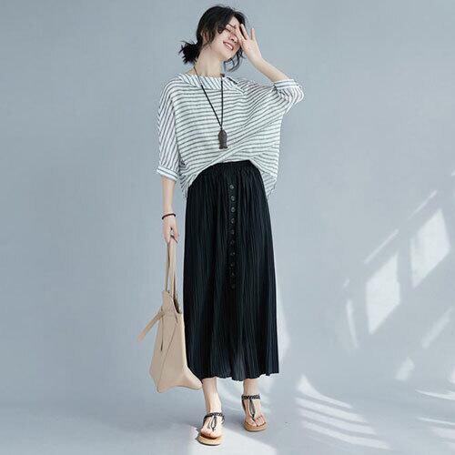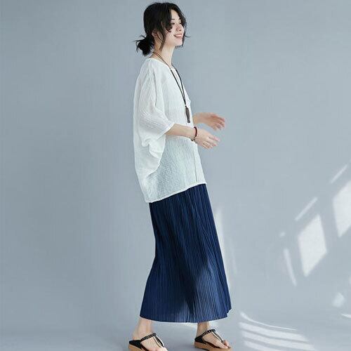 スカート プリーツ レディース 夏 フロントボタン ハイウエスト 4カラー 薄手 通勤 きれいめ トレンド ロング丈 大人可愛い ゆったり 体型カバー 主婦 OL 20代 30代 40代 RB-R3-BA01-SA07-0178