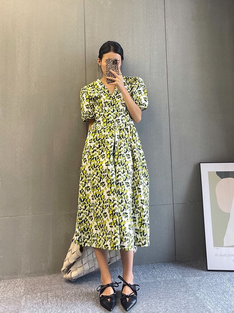 ゆったり 体型カバー 主婦 OL 20代 30代 40代花柄 Vネック ワンピース RB-R3-BA04-NK08-0021