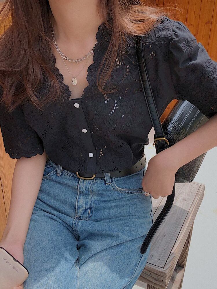 ゆったり 体型カバー 主婦 OL 20代 30代 40代 レース ブラウスRB-R3-BA04-NK08-0041