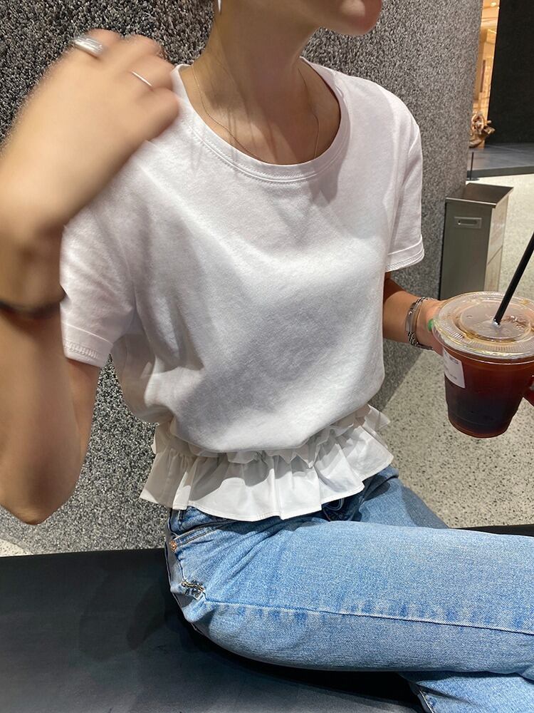 ゆったり 体型カバー 主婦 OL 20代 30代 40代フリル ショート カットソーRB-R3-BA04-NK08-0050
