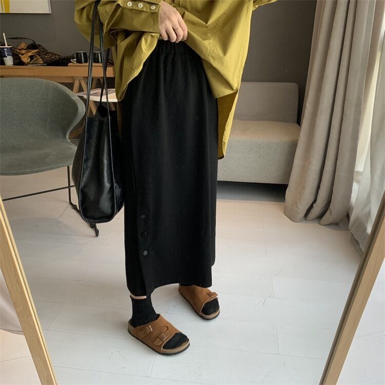 ゆったり 体型カバー 主婦 OL 20代 30代 40代スリット ロング スカートRB-R3-BA04-NK08-0061
