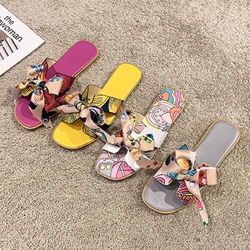 20代 30代 40代 秋 スカーフ柄リボンサンダル ぺたんこサンダル 全4色 RB-R3-BA04-SA08-0028