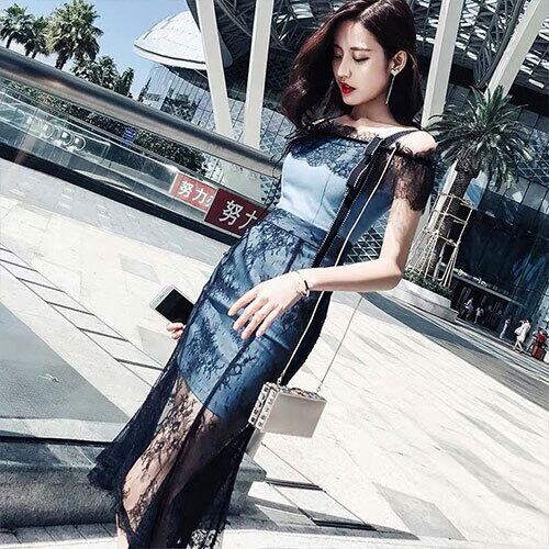 20代 30代 40代 秋 デニム ブラックレースドッキングワンピース RB-R3-BA04-SA08-0033