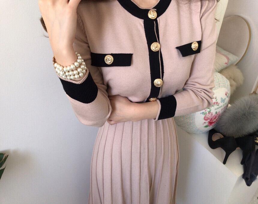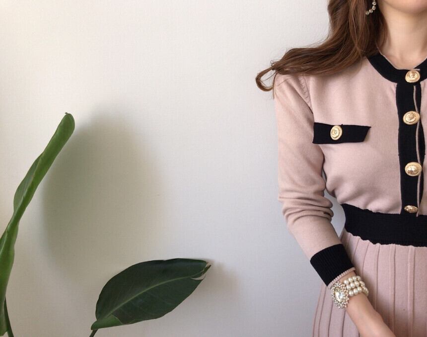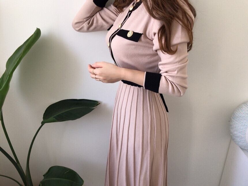 20代 30代 40代 秋 バイカラーニットワンピース ベルト付き ピンク RB-R3-BA04-SA08-0037