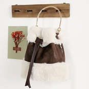 20代 30代 40代 秋 ムートン風エコファーバケツバッグ ゴールドハンドルショルダーバッグ 全2色 RB-R3-BA04-SA08-0042