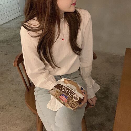 20代 30代 40代 秋 フレア袖 トップス フリルネック カットソー プルオーバー ホワイト RB-R3-BA04-SA08-0044