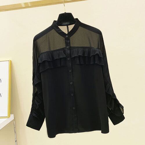 20代 30代 40代 秋 胸元&袖フリル ブラウス シフォン トップス 全2色 RB-R3-BA04-SA08-0046