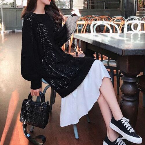 20代 30代 40代 秋 かぎ編みロングニット&キャミワンピセット 全3色 RB-R3-BA04-SA08-0059