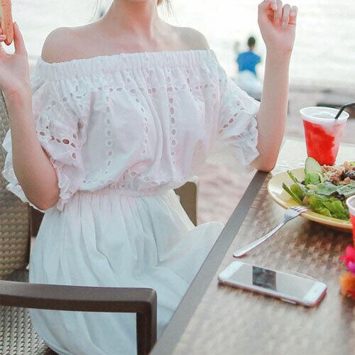 20代 30代 40代 秋 オフショルダー ホワイト コットン ミモレ丈 ワンピース リゾートワンピース RB-R3-BA04-SA08-0065